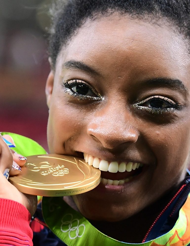 Simone Biles. 19 ans. Médaille d’or US au Concours général Gymnastique aux JO de Rio.