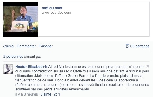 C’est sur le réseau social #Facebook qu’on a appris la nouvelle. Le torride différend entre le sociologue Hector Élisabeth et Alfred Marie-Jeanne provoqué par l’affaire du #Ceregmia va se régler devant un juge. Le député de #Martinique devrait être assigné devant le tribunal pour diffamation. A suivre.