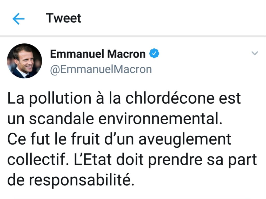 « La pollution à la #chlordécone est un scandale environnemental. Ce fut le fruit d’un aveuglement collectif. L’Etat doit prendre sa part de responsabilité ». Dixit Emmanuel #Macron président de la République française lors de sa visite en #Martinique.
