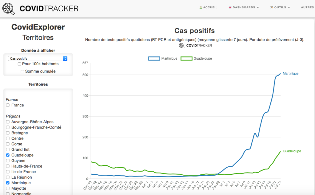 La semaine dernière 2411 cas. Cette semaine en Martinique la covid-19 prend de la hauteur. En bon dard et en tout cas car ça sent fort le reconfinement.