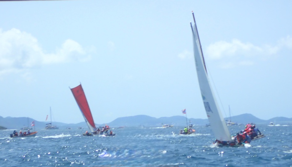 L’étape de ce mardi 1er aout entre le Diamant et Rivière-Pilote a été passionnante. Le vent sud a favorisé de très longs bords. Longtemps on a cru une dizaine de yoles, dont des gwo-modan comme, Ets Rosette/L’Appaloosa, Cottrell/Leader Mat, Sapro/Pneus Cash avec CTDM/EDF/Fraikin en compagnie de Elizé Restaurant/ Madiana Cinéma larguée tandis que Sara/Auto Distribution et UFR/Chanflor se livraient une bataille en tête de flottille quand Cottrell/Leader Mat restait au contact et que GFA. Caraïbes et CFA Umih Formations/RSMA occupaient les 4ème et 5ème place à ce moment de la course. Et puis patatras. Un bord qui se révéla hasardeux sortit Cottrell/Leader Mat du trio de tête quand, dans le même temps une bascule de vent portait les yoles de derrière vers la bouée de Sainte-Anne.