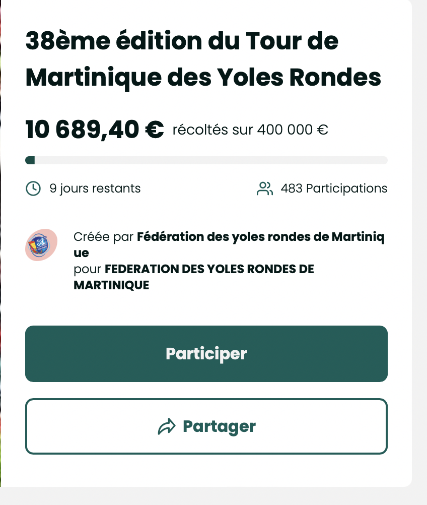 38 ème Tour de Martinique des yoles rondes …Cagnotte Leetchi versus Subvention Letchimy…on vient de franchir la barre des… 10 000 euros.