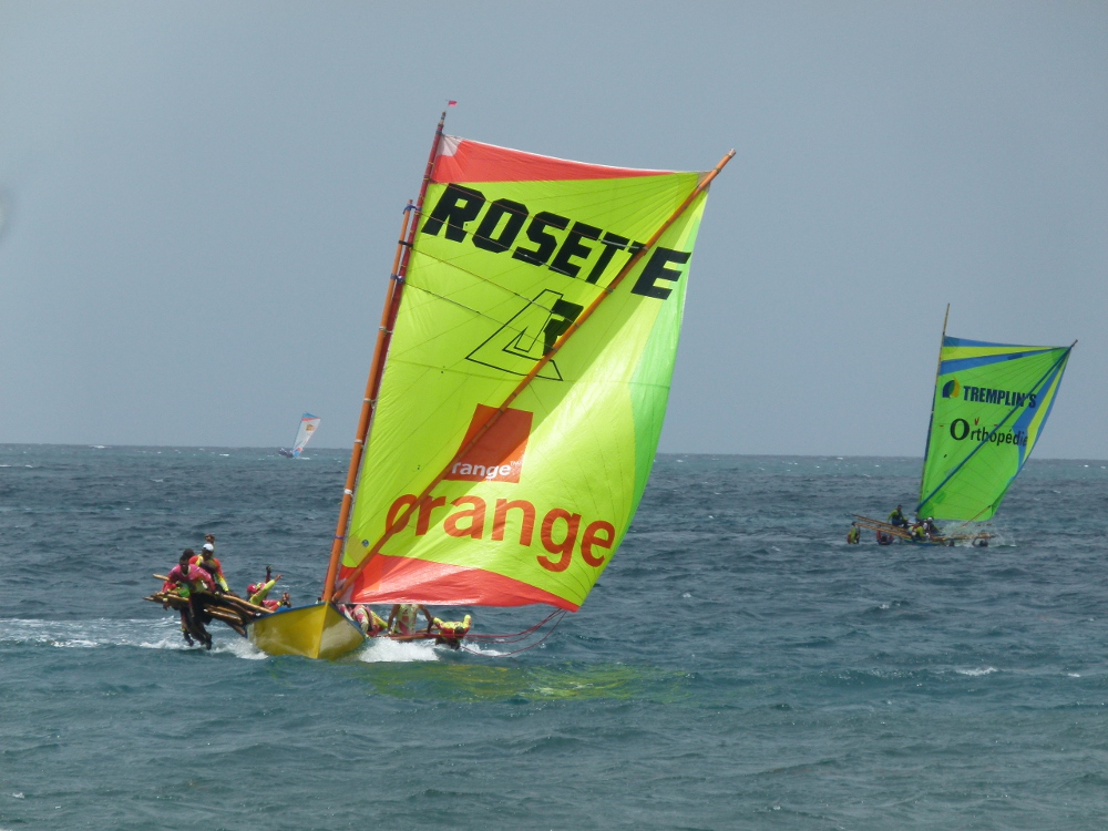 La course a été spectaculaire et les atterrissages des yoles l’ont été plus encore mais là, les grosses vagues ont fessé plusieurs yoles ce qui a causé des blessures à des coursiers contraignant la direction de course à annuler la seconde régate.