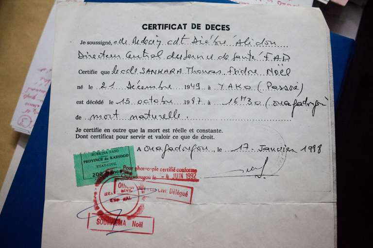 Le certificat de décès de Thomas Sankara, daté du 17 janvier 1988, présente sa mort comme « naturelle ».