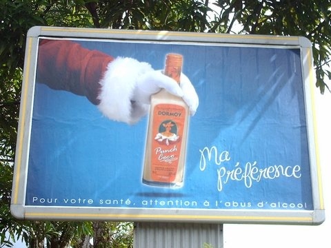 « Ça part en vrille en Martinique. A l’orée des fêtes de fin d’année, la marque #Dormoy s’empare de l’image du père noël. Sa nouvelle campagne d’affichage 4X3 montre une dimension étonnante pour ce symbole de fête. Une image que la marque Coca-Cola avait inscrite dans sa communication depuis que la réclame existe. Le hic (oups) éthylique c’est que le gros monsieur à la barbe blanche et au costume rouge est le héros préféré des enfants. Associer son image à une boisson alcoolisée défie toutes les règles de la décence sanitaire. En sus, l’accroche « Ma préférence » n’est pas un cadeau puisqu’il fait du bonhomme un poivrot indigne de son statut. Le punch-coco Dormoy prend le pas sur le Soda. On vit une époque formidable. Mais que fait le BVP (Bureau de Vérification de la Publicité) ? Au fait, si au pied de votre sapin de noël votre rejeton vous dit « Maman, papa, je veux la même chose que le père noël », ne soyez pas étonnés. »