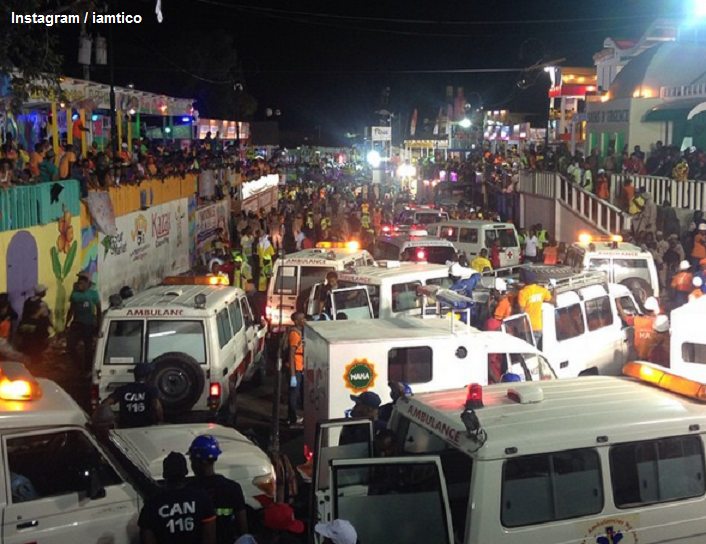 Drame en #Haïti. A Port-au-Prince. Au moins 18 personnes ont été tuées ce mardi vers 3 heures du matin quand un char de #Carnaval (celui de Barikad Crew, populaire groupe de rap) a touché une ligne d’alimentation électrique. Sept des victimes ont été électrocutées et les autres sont mortes dans les mouvements de panique qui ont suivi.