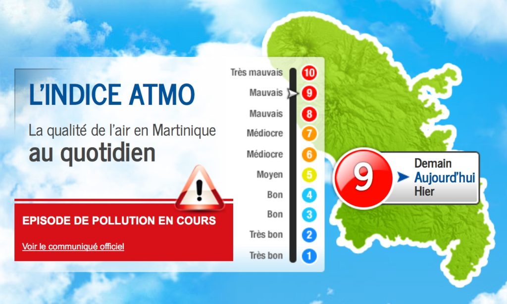 « Atmosphère, atmosphère…est-ce que j’ai une gueule d’atmosphère ? « . Ce matin, encore une journée de brume de sable en #Martinique. La visibilité est très réduite. Qui s’en inquiète ?
