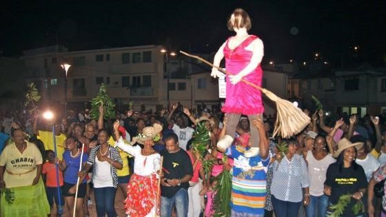 Entre le bwabwa de Miss Cathou (photo) et le vidé « Chaben Viré », (suivre le lien Chaben viré) la chose politique prend le devant de la scène du Carnaval populaire en cette année 2016, dite de la Miséricorde (sic).