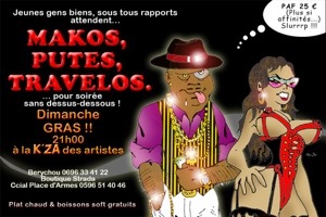 Carnaval : Soirée Makros, Putes, Travelos bondamanjak 13 ans ago Carnaval 2013 en Martinique : Le place To be sera à la soirée Makros, Putes, Travelos le dimanche gras à la K’Za des artistes . PAF : 25€