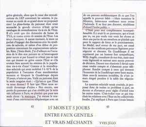 Hier soir, je discutais sur Facebook avec un patron qui oeuvre en Martinique.Alors que je lui parlais du principe du pollueur payeur qui s’applique en Europe mais pas en Martinique, Il me reprochait de diviser les Martiniquais : » Si ta méthode consiste à opposer les Martiniquais les uns aux autres, ce n’est pas la mienne. « . Aussi, je me suis penché sur des données historiques datant de…2009. Et je vous propose pour analyse intime deux pages extraites d’un livre de Yves Jégo Ministre de l’Outremer qui était au coeur de Février 2009. Trois ans plus tard…Sans commentaire mais comment taire ?