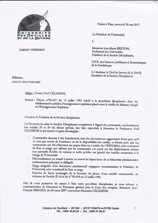 C’est une bonne question. Une seule chose est sûre…Le texte qui suit est extrait d’un rapport rédigé en 2007 par le président de l’UAG, Georges Virassamy et adressé au Président de la Commission disciplinaire, pour signaler des faits graves qu’il reproche à Fred #Célimène, directeur du Ceregmia…Édifiant.