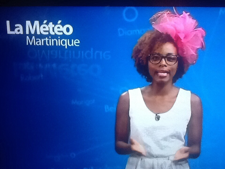 Sur le divan de la salle à manger, les téléspectateurs qui regardent la #météo sur Télé #Martinique Première ont pu apprécier ce bel accessoire décoiffant porté par cette présentatrice qui annonçait la pluie ou le beau temps. Rien de plus normal à Madinina l’île aux fleurs.