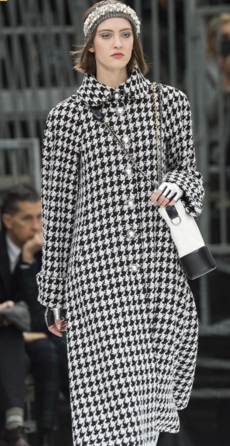 Ambiance intersidérale, allures aériennes.. Les mannequins sont vêtues du fameux tweed et de mailles avec des cols et épaules matelassés façon combinaisons spatiales en aluminium, avec des lignes fuselées où se mêlent broderies, perles et brillants.