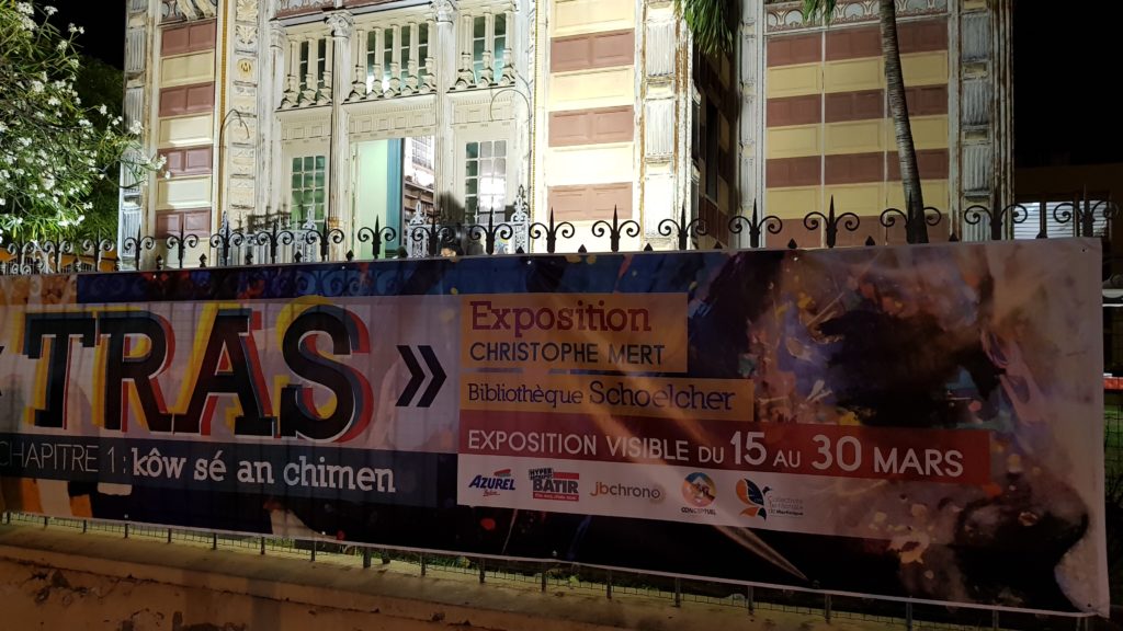 « TRAS » Chapitre 1 : kôw sé an chimen. C’était le vernissage ce soir de l’exposition de Christophe Mert à la Bibliothèque Schoelcher à Fort-de-France en Martinique.