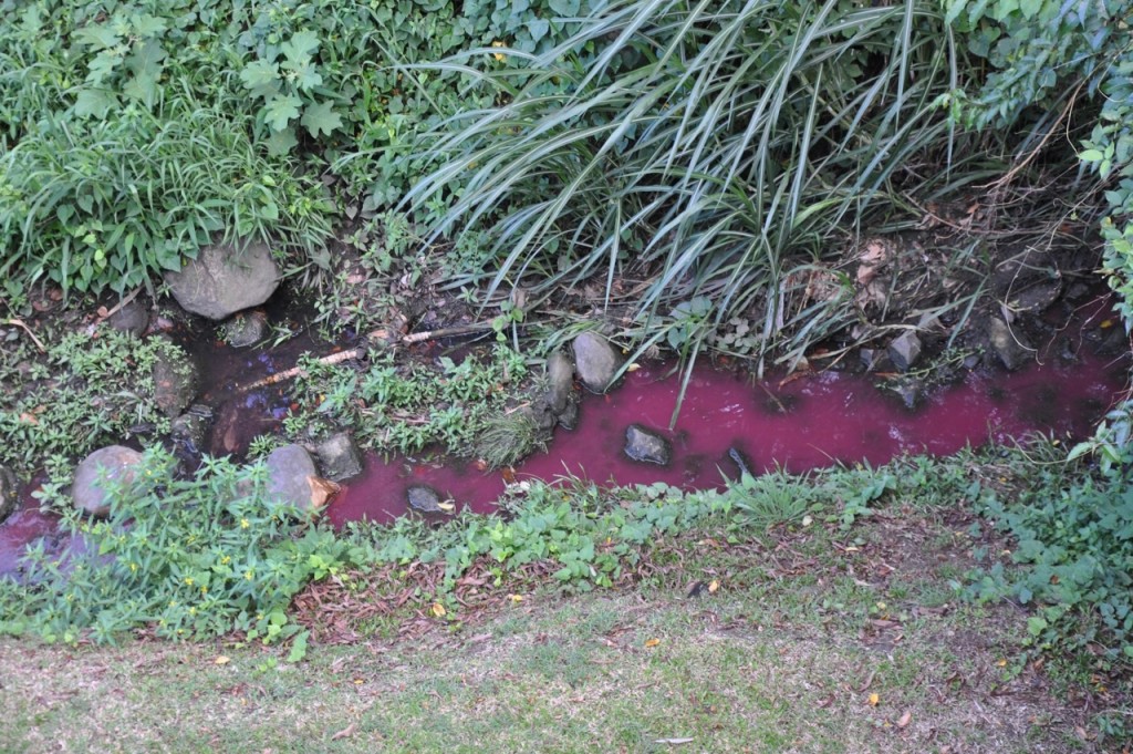 La pollution y est répétée : le cours d’eau peut être teinté de blanc, de magenta, de rouge …