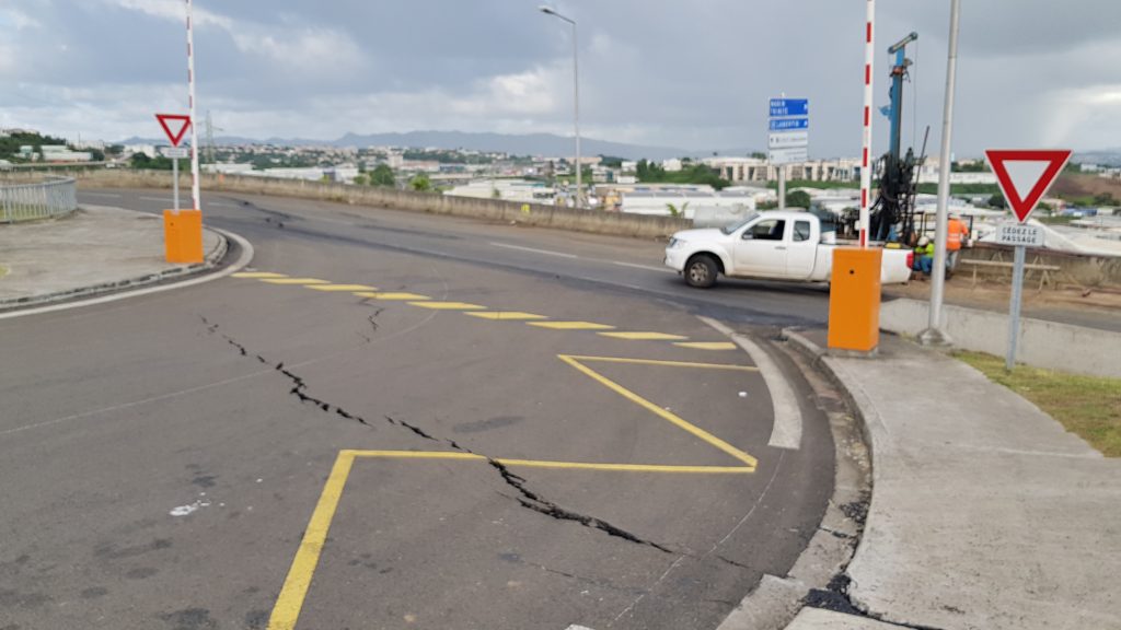 L’échangeur de la Pointe des Sables en direction du Lamentin a décidé de se barrer. Personne ne sait encore pourquoi. Est-ce le tremblement de terre de l’autre jour ? Est-ce la pluie qui s’infiltre et qui à forcer a impacté la stabilité du talus ? Personne ne sait non plus combien de temps ça va bouger et jusqu’où les tonnes de terre iront…