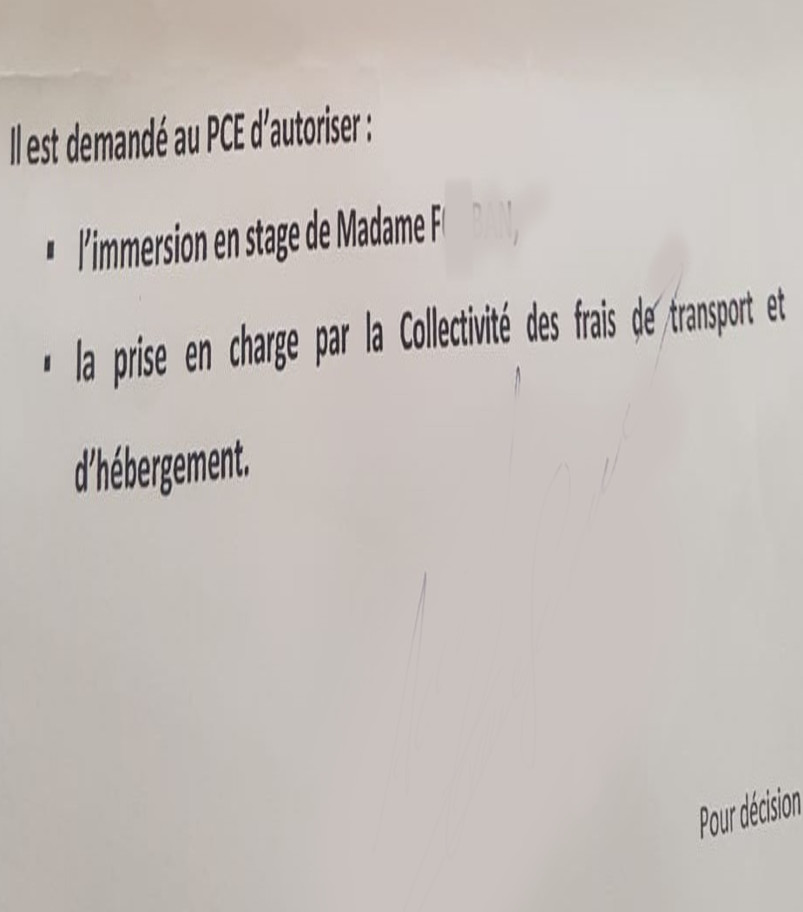 Et pourtant, Mme F. bénéficie en ce moment et pour deux mois du paiement par la CTM de ses frais d’hôtel et de transport à Paris pour un montant plutôt substantiel dans le cadre de l’obtention de son Master.