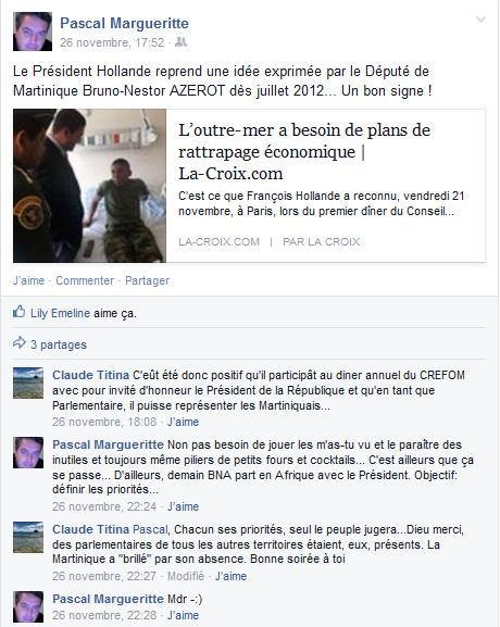 Le révélateur de notre analyse est Pascal #Margueritte, l’attaché parlementaire de BNA. Un post sur #Facebook et … hop…ç a fleure bon la fleur de sargasses (au fait il faudra que je vérifie sur mon ami #Google si la sargasse fleurie pour ne pas être attaqué par Sergio et Karine…les pauvres ils ont déjà perdu une fois…une deuxième fois…ça ne va pas le faire). Donc PM qui défonce au passage une certaine #Titina qui « bosse » à l’#AMPI. (NB : le mot bosse est un mot très flou dans l’île où on confond pistache et cacahuète donc les guillemets sont utiles voire indispensables), est dans une forme olympique puisqu’il atomise fort justement…le…#CREFOM, la coquille vide sarkozyste drivée par le pathétique Patrick #Karam. Pascal emploie des mots… pire des phrases limpides. Les socialistes français n’apprécient pas trop la gouvernance de Monopoly. Nestor fera l’affaire. Pour ceux et celles qui doutent comme pour l’affaire de corruption à…Rivière -Pilote.