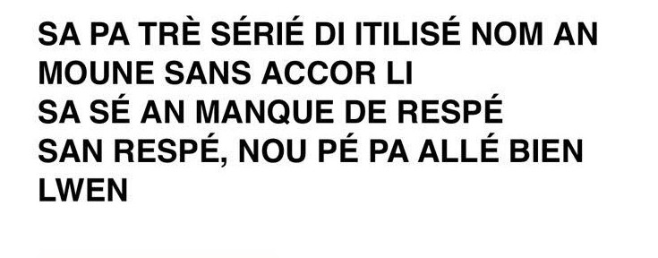 Au fait, le Président devrait vraiment faire prendre des cours de créole écrit et parlé (et de français) au personnel de la CTM. Parce que, à la fin du tract, la partie qu’on a tenté d’écrire en créole est affligeante, ridicule et pathétique.
