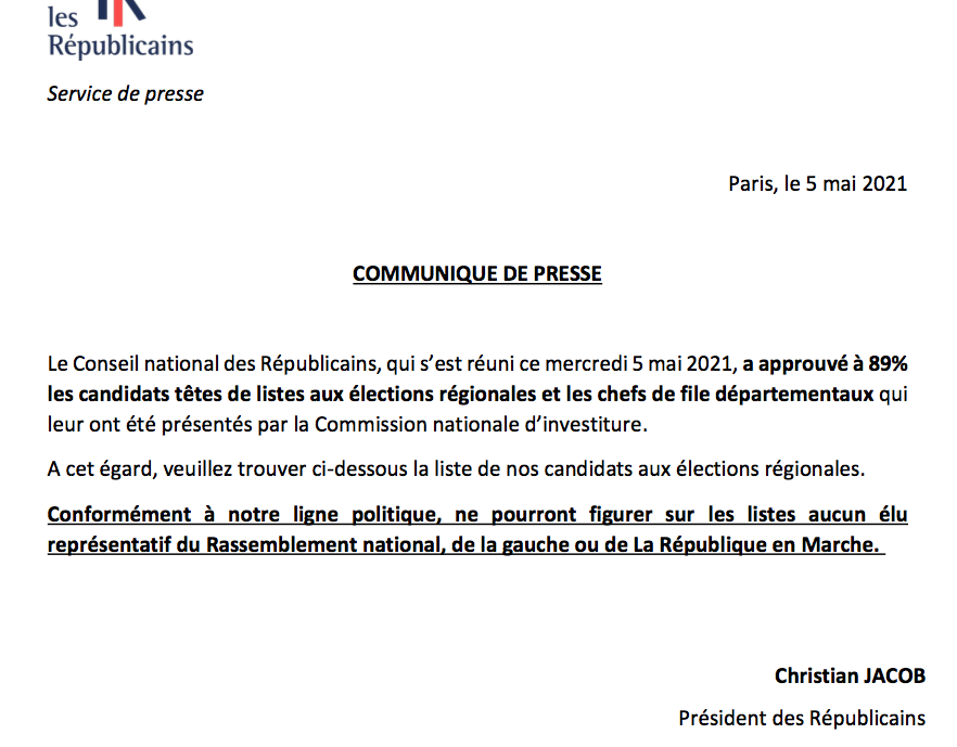 La *majorité* des membres du Bureau Politique de LES RÉPUBLICAINS de Martinique , reconduite récemment dans ses fonctions, précise qu’elle n’a jamais validé d’alliance avec une quelconque des 14 listes présentes pour l élection de la CTM de Juin 2021.