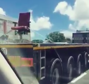 Convoi exceptionnel en #Martinique. Une semi-remorque pour transporter …un fauteuil de bureau. Sans commentaire mais comment taire ?