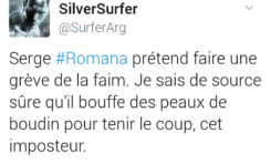 Mr Romana ce n’est pas pour nous que vous faites cette grève de la faim,mais bien pour vous ,votre association ,vos intérêts personnels.
