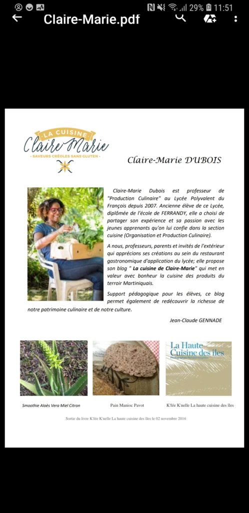 Claire-Marie Dubois est professeur de « Production Culinaire » au Lycée Polyvalent du François en #Martinique depuis 2007.Elle est donc fonctionnaire de l’Éducation Nationale française.