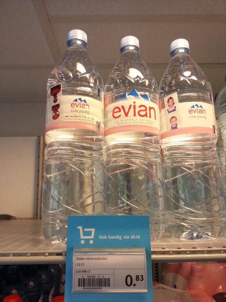 #Evian World Tour 2014 : #Carrefour #Martinique remporte haut la main l’#Anus d’or de l’année. Du simple au double. Nous avons comparé les prix avec ceux pratiqués à #Amsterdam en Hollande. Il n’y a pas photo. Dans l’île aux grèves, la bouteille de 1.5 L d’Evian coûte 1.68 € contre 0.83 € dans la ville aux vélos. Il faut vraiment que le préfet fasse de l’anus du Martiniquais un orifice sanctuarisé. Sans commentaire mais comment taire ?