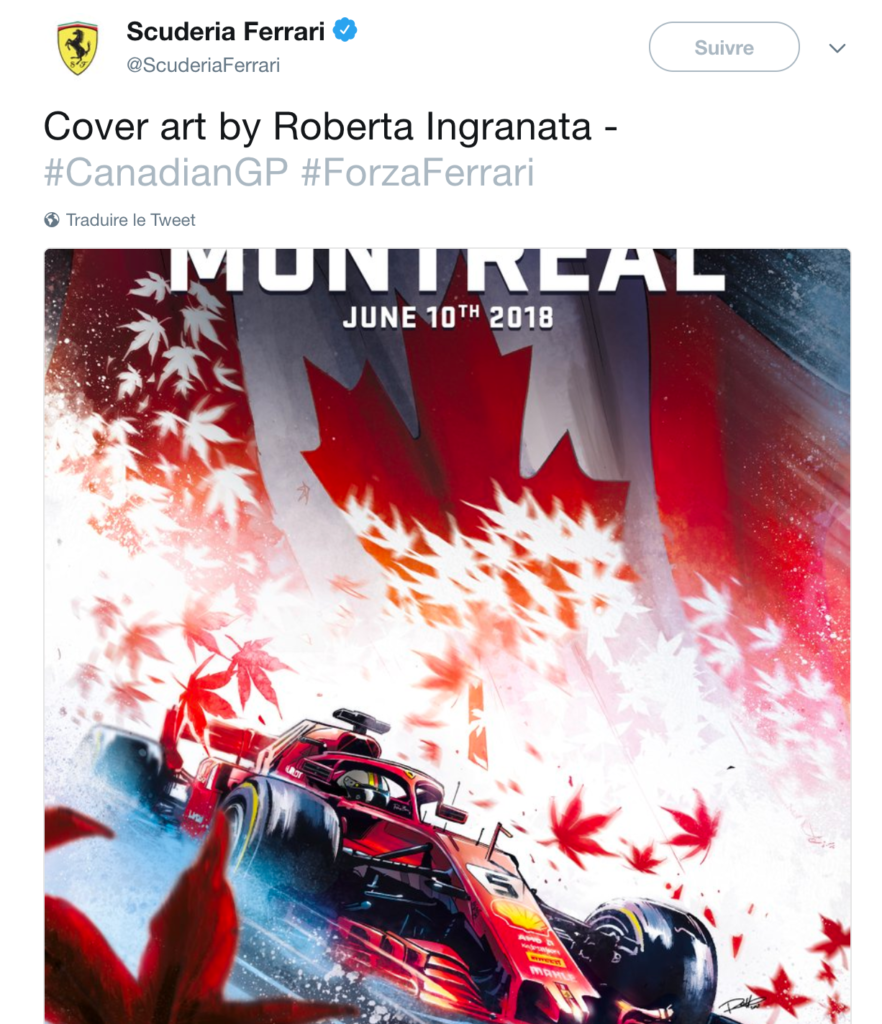Ferrari invente la Formule « H » bondamanjak 8 ans ago Pour illustrer sa prochaine participation au Grand Prix de Montréal de Formule 1, la Scuderia Ferrari a sorti un très joli visuel… Les feuilles d’érable ont une drôle d’allure 🤔 et Twitter ne se laisse pas enfumer…