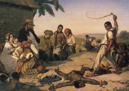« Le fouet est une partie intégrante du régime colonial, le fouet en est l’agent principal ; le fouet en est l’âme ; le fouet est la cloche des habitations, il annonce le moment du réveil et celui de la retraite ; il marque l’heure de la tâche ; le fouet encore marque l’heure du repos ; et c’est au son du fouet qui punit le coupable, qu’on rassemble soir et matin le peuple d’une habitation pour la prière ; le jour de la mort est le seul où le nègre goûte l’oubli de la vie sans le fouet. Le fouet en un mot est l’expression du travail aux Antilles. »