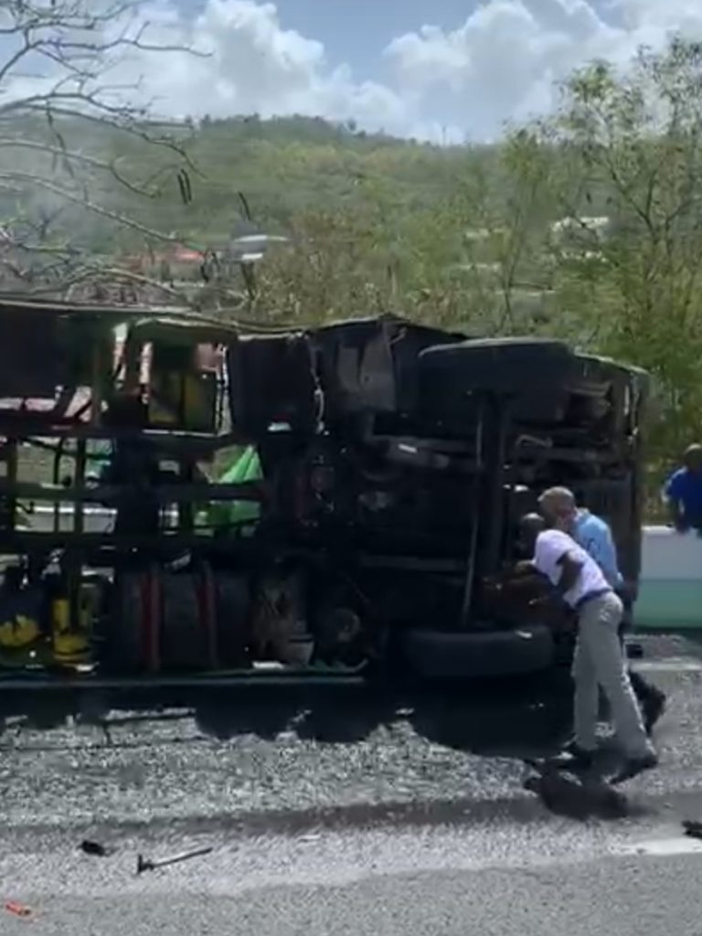 Ce mardi 18 février 2020, un camion citerne, spécialisé dans la vidange de fosse septique s’est renversé sur la RN2 face à la gendarmerie à Case-Pilote en #Martinique. On dénombre 2 morts qui ont été écrasés par le véhicule.
