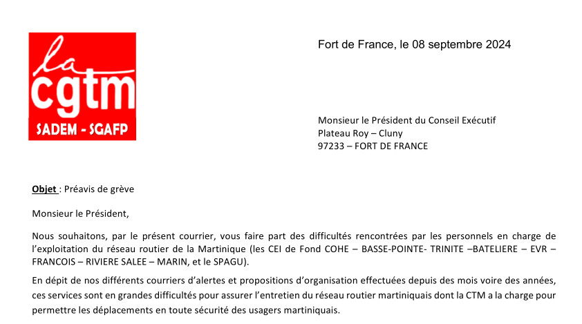 Le long tract sur la situation de ces services routiers de la Collectivité de Martinique est hallucinant.