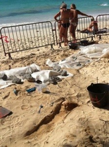#Guadeloupe : Sous le macabre…la plage bondamanjak 12 ans ago Un site archéologique doublé d’un cimetière…ça devrait être respecté. Certains en #Guadeloupe devraient se mettre ça dans…le crâne. Au fait…que vois-je à gauche du seau noir ?