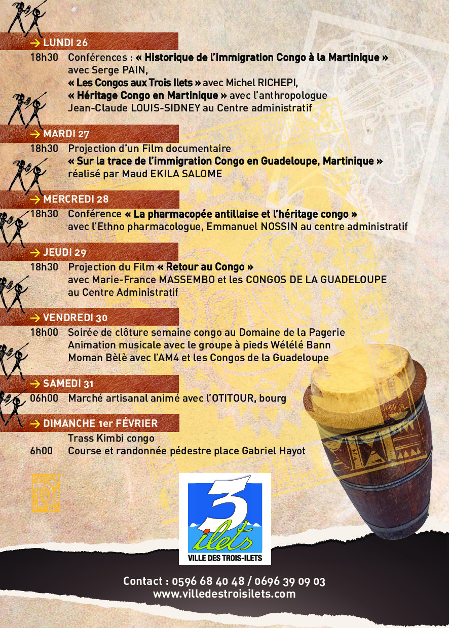 Après un premier cycle de conférence sur « l’héritage Amérindien » en novembre dernier, la Ville des Trois-Ilets propose de se pencher sur « l’héritage Congo ».