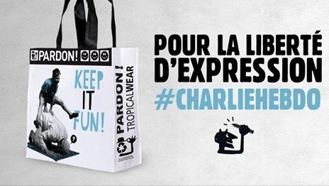 le magazine Charlie Hebdo et donc la libre expression. Après notre TS « Cabri massalé » une allusion à l’hindouisme, notre TS « Matez ces Tongs » et notre sac « la marque des grands », tournant en dérision le pape Benoit XVI, voici notre sac shopping « Keep it fun » (disponible gratuitement dans nos boutiques) ».