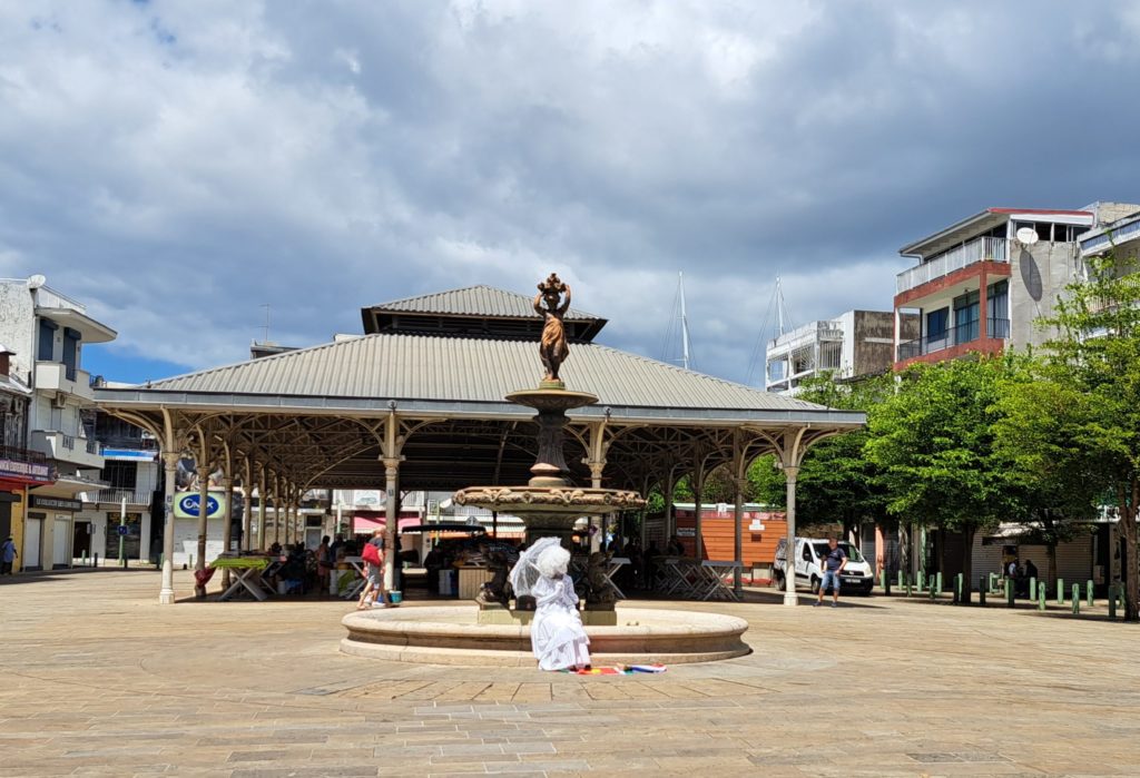 Image du jour à Pointe-à-Pitre bondamanjak 3 ans ago Assise sur la margelle de la fontaine du Marché aux Epices de Pointe-à-Pitre en Guadeloupe, masquée, tout de blanc vêtue avec à ses pieds un drapeau guadeloupéen et un drapeau français.