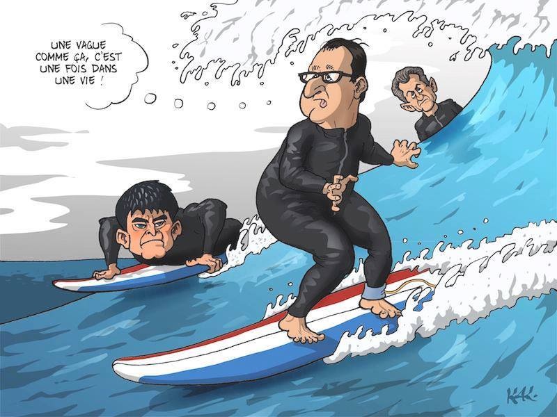 Selon le baromètre #Ifop-Fiducial, le président de la République française François #Hollande, qui a été en première ligne sur la gestion des attentats de #Paris, a gagné 21 points de popularité. Un bond exceptionnel. Ce qui lui permet d’afficher un rassurant 40% d’avis favorables. Le premier ministre Manuel #Valls gagne lui 17 points, ce qui le place à 61% de popularité, score supérieur à celui de son entrée à Matignon. Comme quoi…le kumquat.