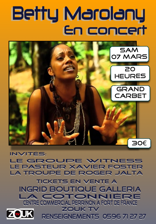 Joue et tente de gagner ta place pour le concert de Betty #Marolany en #Martinique.