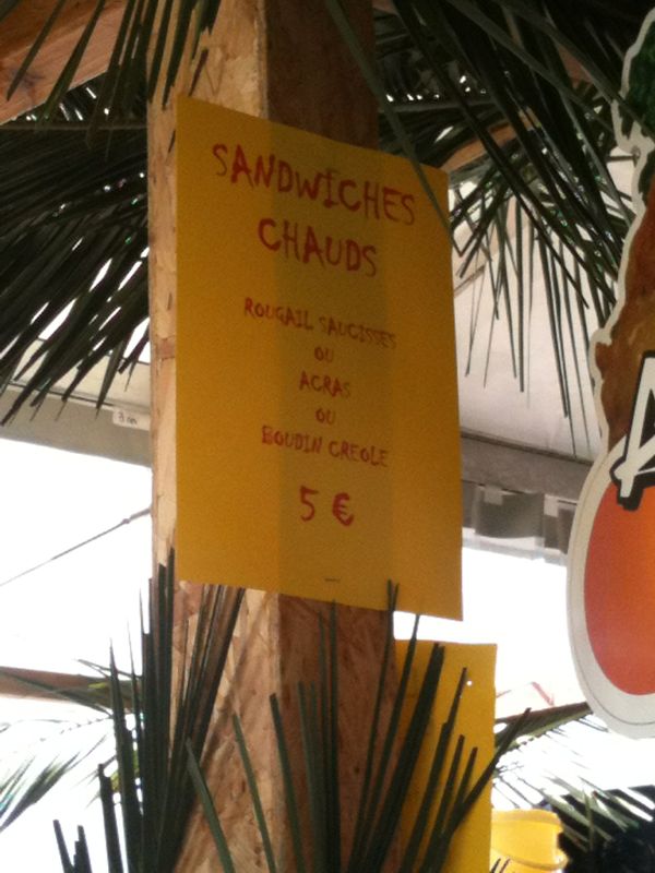 Dans le chapitre des innovations malheureuses en terme culinaire, le sandwich au boudin créole avec le boudin étalé dedans et le sandwich acras sans la moindre petite feuille de laitue pour alléger la friture. Mauvais jour même pour notre gastronomie aussi, donc.