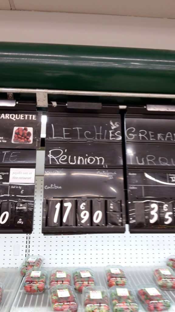 Alors qu’il ne vend pas de letchis dans ses hypers à l’île de La #Réunion, Bernard « Vaseline Man » #Hayot se rattrape en #Martinique. Ce jour, à #Carrefour Dillon on pouvait voir, ce produit qui s’achète à 1€ le kilo dans le 974, à 17.90€ dans le département où on confond pistache et cacahuète. Sans commentaire mais comment taire ?