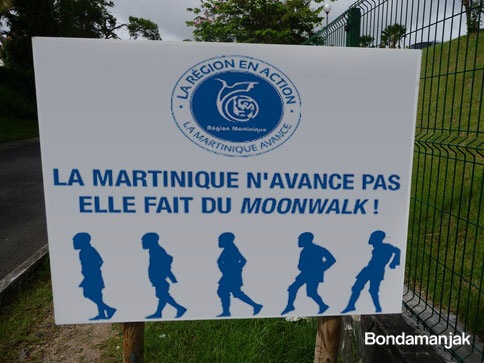 La #Martinique n’avance pas…elle fait du MOONWALK bondamanjak 11 ans ago Les campagnes de communication se suivent mais ne se ressemblent pas en #Martinique. En voilà une visible sur plusieurs panneaux dans l’île, dont la gouvernance ne manque pas d’ingénierie. Lol ? Oui…Lol.