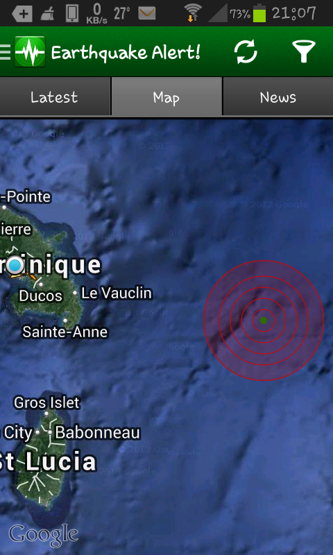 Un séisme important (magnitude 5.2 sur l’Échelle de Richter) a été enregistré le lundi 15 septembre 2014 à 17:09 (heure locale) et identifié d’origine tectonique. L’épicentre a été localisé à 72 km à l’est-sud-est du Vauclin, à 21 km de profondeur (soit une distance hypocentrale d’environ 75 km).
