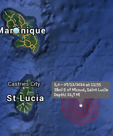 Un séisme important (magnitude 5.1 sur l’Échelle de Richter) a été enregistré en #Martinique le dimanche 07 décembre 2014 à 11:35 (heure locale) et identifié d’origine Tectonique . L’épicentre a été localisé à 86 km au sud-est de Sainte-Anne, à 7 km de profondeur (soit une distance hypocentrale d’environ 86 km).