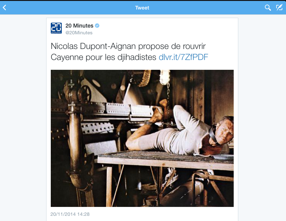 Dans ce rôle de connard simple… on retrouve ce jour l’ancien candidat à la présidentielle le député Nicolas Dupont-Aignan, président du mouvement Debout la France. Il vient de suggérer de rétablir un centre de détention à…Cayenne, en Guyane « française », pour y enfermer les jihadistes de retour en France.