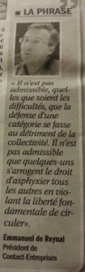 Le Président de Contact Entreprises Emmanuel de Reynal découvre ENFIN les retombées néfastes et traumatiques du VIOL. On peut ainsi dire MERCI… trois fois MERCI aux chauffeurs de taxis collectifs et aux transporteurs de la Martinique qui ont, bien sans le vouloir et grâce à une grève, ouvert les yeux voilés de ce chef d’entreprise. OUF… le monde change. P0urvu que ça dure. Croisons les doigts.