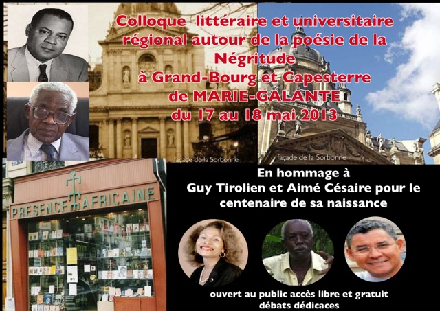 En hommage à Guy Tirolien et Aimé Césaire, dans le cadre du centenaire de sa naissance. Le programme du Colloque littéraire et universitaire régional sur la poésie de la négritude :