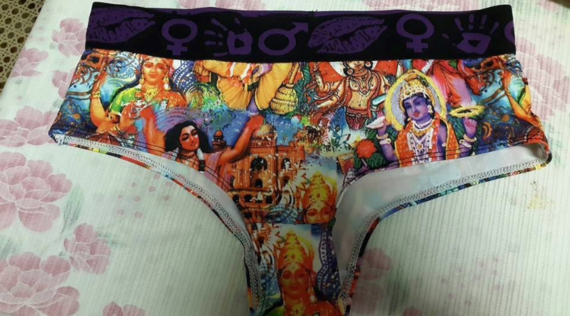 Ça se passe à l’île de La Réunion. On est pourtant dans l’univers du métissage. Dans le nirvâna du « We are the world. Le laboratoire. Mais ce slip, risque de venir casser les couilles à toutes ces icônes connes qui perdurent dans un département français où on compte 153 000 chômeurs, 342 000 personnes sous le seuil de pauvreté et…116 000 illettrés…un chiffre extraordinairement stable depuis 15 ans. Ce sous-vêtement qui pioche allègrement dans le sacré de la communauté indienne a beaucoup choqué les membres de cette dernière qui généralement fait dans le zen. Eh oui ça se passe comme ça au paradis. Pour l’heure, Dieu ne dit rien. Il a sûrement autre chose sur le feu.
