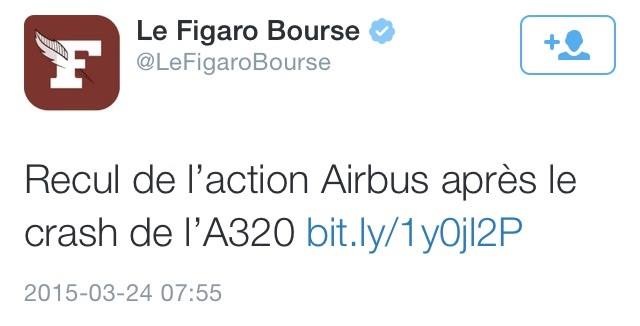 Le tweet du jour (24/03/15) #crash #airbusA320 #A320 bondamanjak 11 ans ago Sans commentaire mais comment taire ? #crash #airbusA320 #A320 #lefigarobourse