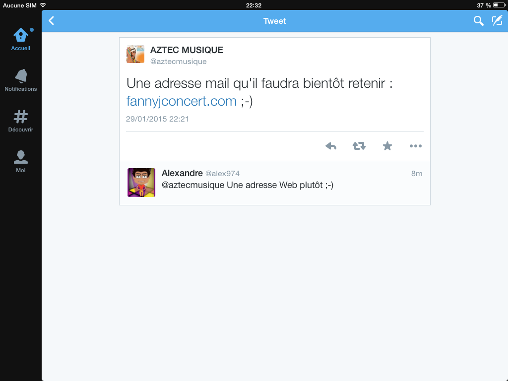 Le #tweet du jour (29 janvier 2015) #aztecmusique bondamanjak 11 ans ago Le #tweet du jour (29 janvier 2015) #aztecmusique. Sans commentaire mais comment taire ?