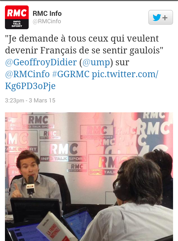 « Je demande à ceux qui veulent devenir Français, quelle que soit leur confession, quelles que soient leurs origines sociales, quelle que soit leur classe sociale, je leur demande de se sentir #gaulois »